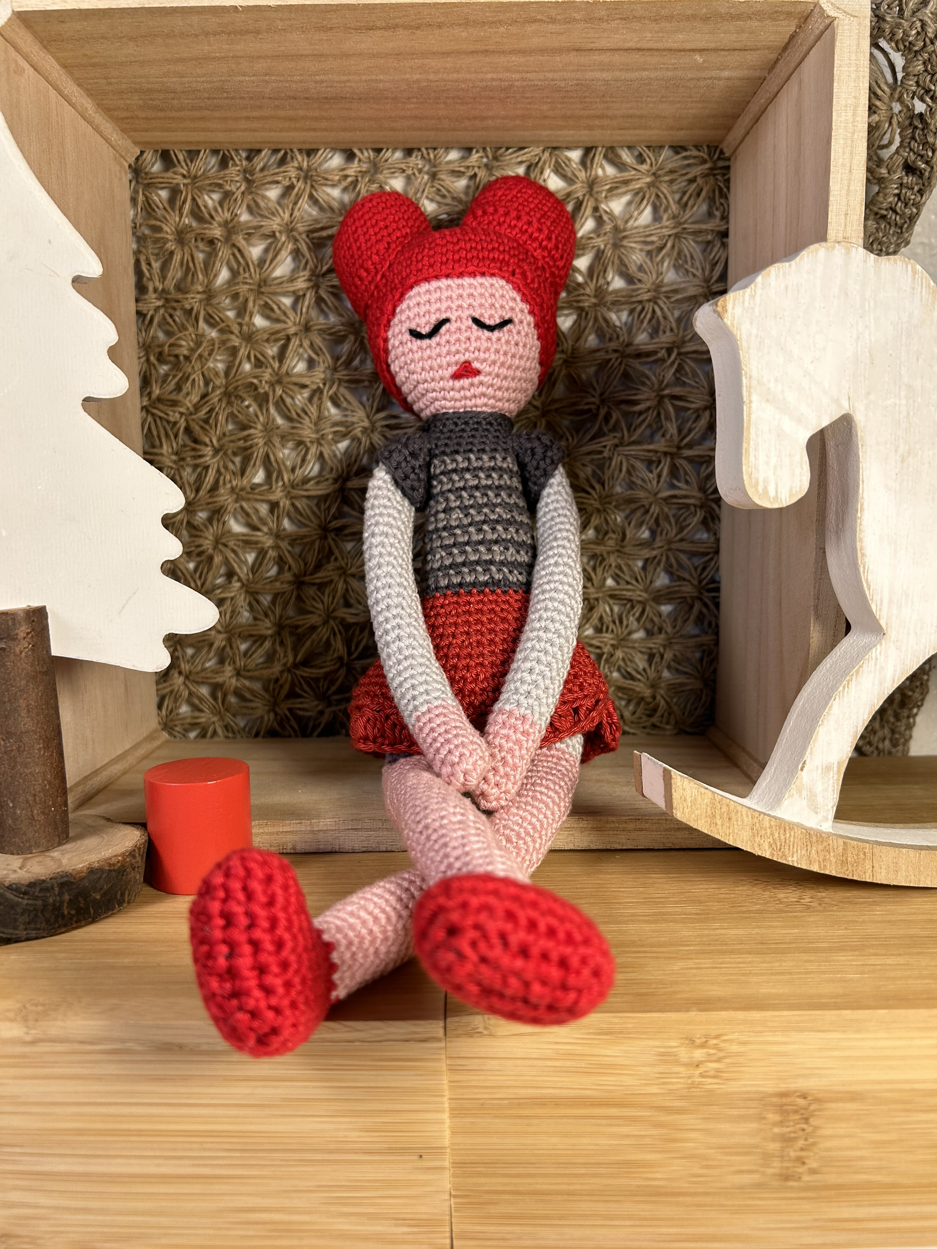 Sa chevelure rouge et ses longues jambes font de cette poupée un doudou vraiment unique.