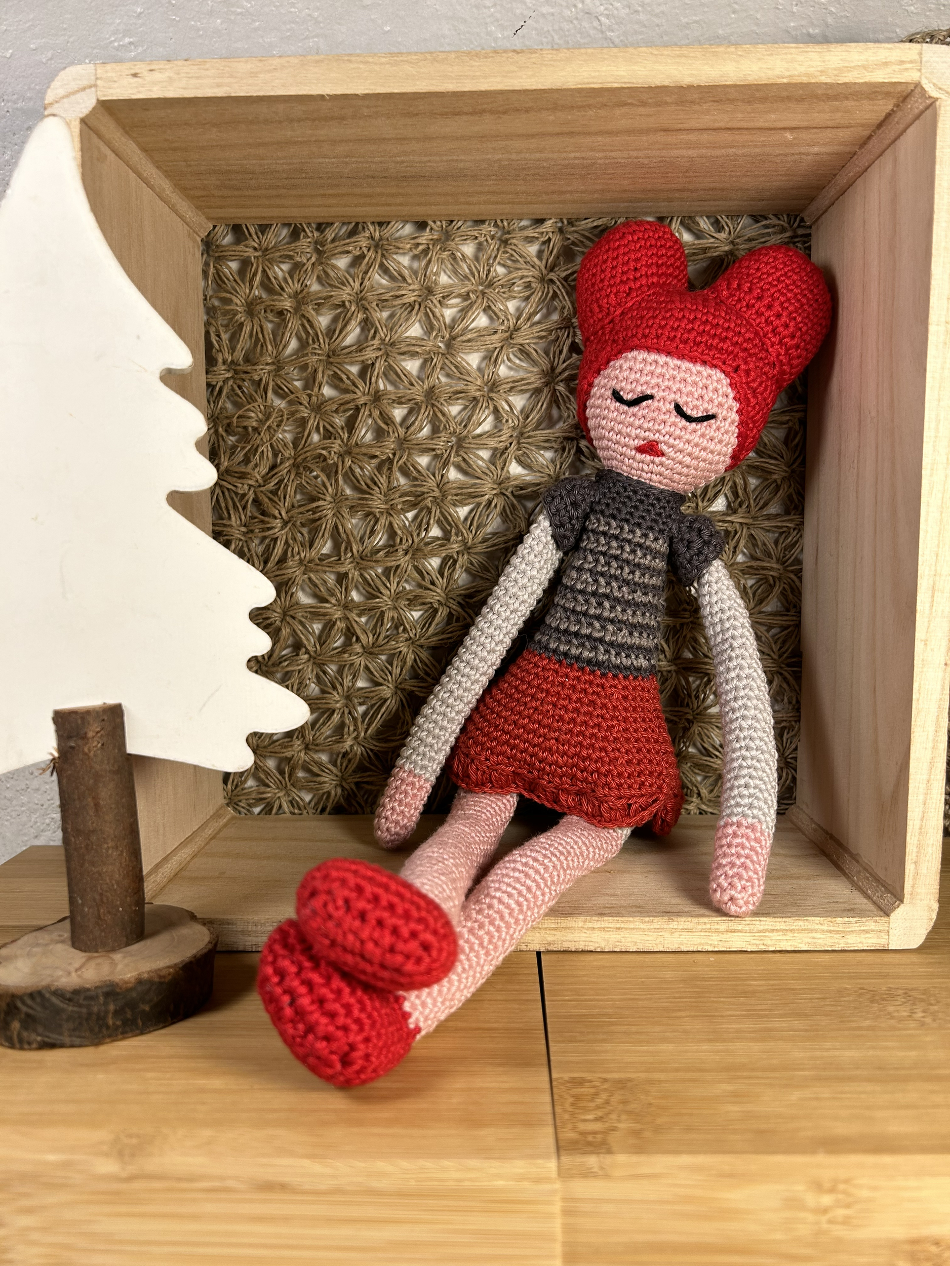 Poupée tricotée en fil 100 % coton.